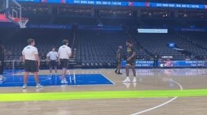 今天有机会吗?杨瀚森赛前热身秀各种扣篮 三分球也信手拈来