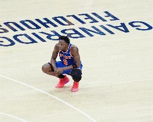 仅出战5分钟!尼克斯官方:阿努诺比左腿筋拉伤 本场不会回归