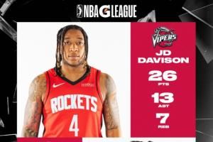 Die π!休斯顿雨姐JD·戴维森统治G联盟 狂砍26分7板13助!