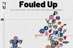 尺度变了?本赛季各队场均罚球22.4次 上赛季仅为19.1次